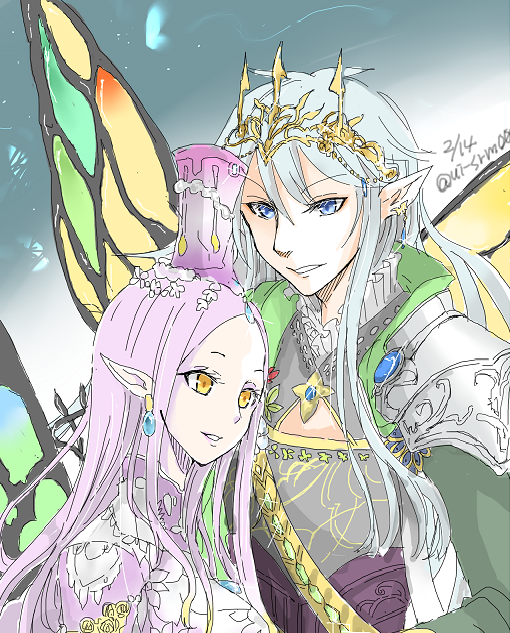 フォロワーさんのお誕生日イラストです。夏の夜の夢から妖精王オーベロン、妖精妃ティタニアです。