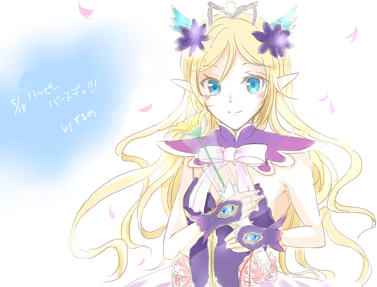 2月6日がこのゲームを始めて1年日ってことで、一番最初に来た★5キャラであるエルノアちゃんを描きました。妖精の姫なのでなるべく可愛くもありきれいでもありを目指しましたが…;;;