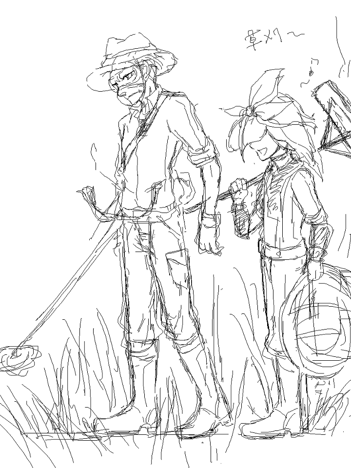草刈りするぞー。フェルが持ってるのはレーキ(熊手)です。
