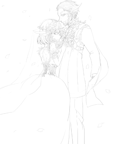 この絵で頑張ったのは、ミラベルさんのコルセットの百合の絵。百合難しい…!!!