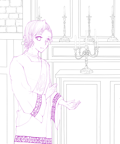 この絵で楽しかったのは燭台!フリーハンド